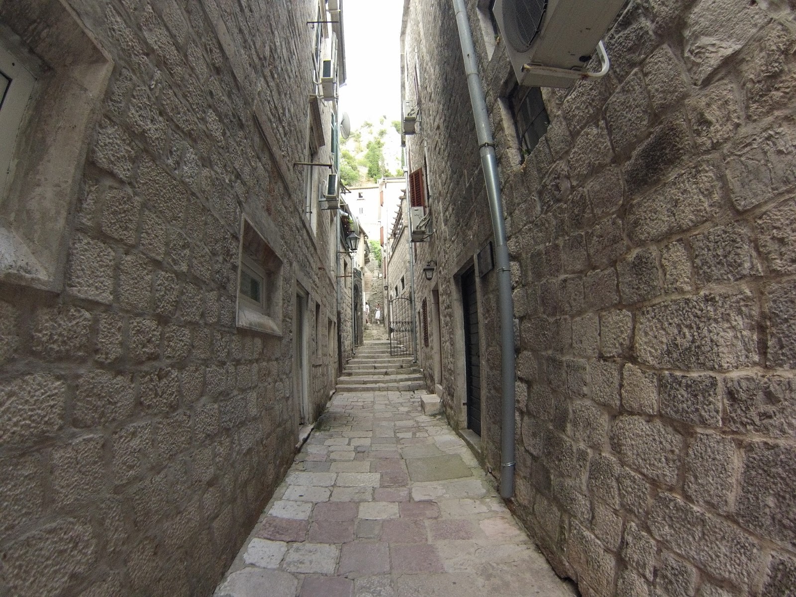 When we arrived we started looking for our hostel (Monica hostel). We couldn't count on couchsurfing - Kotor is a touristic town . And it is one of the best preserved medieval towns in South-Eastern Europe. City is surrounded by walls that connect with the fortress of St. John (Tvrdjava St. Iva). The characteristic medieval urbanism are narrow, winding streets and irregular squares, magnificent temples and buildings in the styles of Romanesque, Gothic, Renaissance and Baroque (wikipedia). And it is because of these narrow streets, we could not find our hostel ! They all looked the same ..